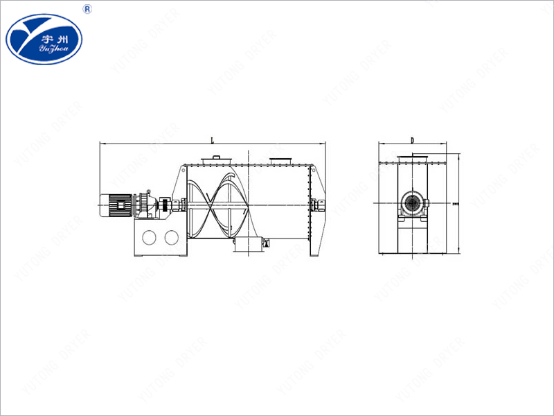 This model consists of a container, spiral stirring blades, and transmission components: the spiral blades are generally made into double or triple layers, with the outer layer of spiral collecting materials from both sides to the center, and the inner layer of spiral conveying materials from both sides of the center, forming convective mixing.