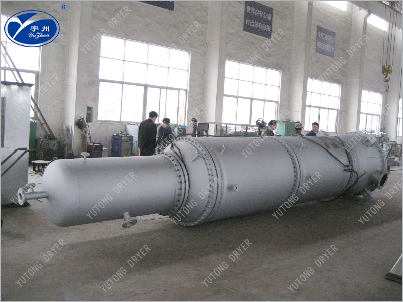 The overcurrent time of the material in the evaporator is very short, about 10 seconds; For commonly used activity scrapers, there are guiding grooves on the end face of the material being scraped, and the angle of inclination is usually 45 ℃. Changing the angle of inclination can change the flow time of the material. Under the scraping of the scraper, the material spirals down and leaves the evaporation section. Shorten the overcurrent time and effectively prevent the decomposition, polymerization, or deterioration of the product during the evaporation process.