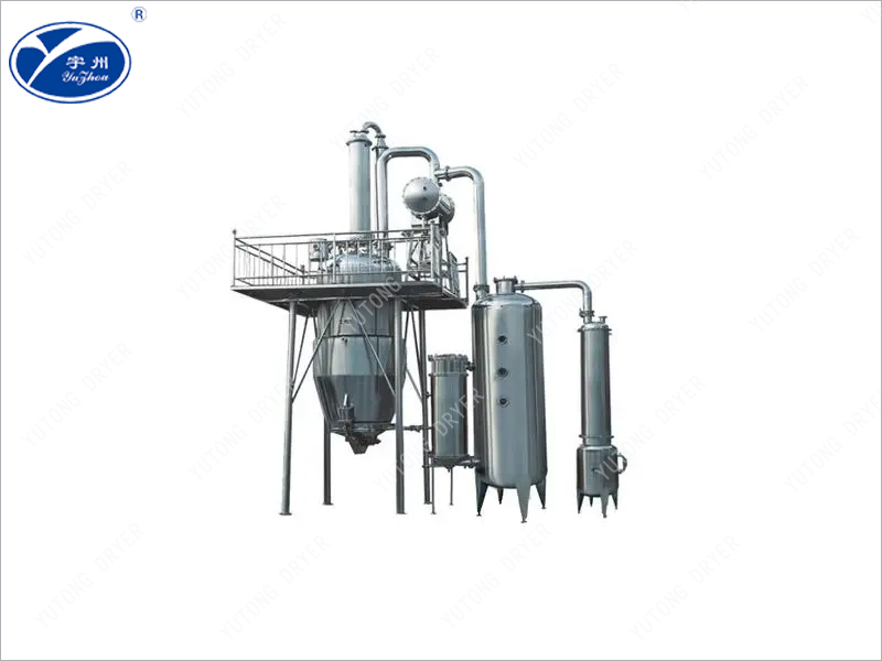 The secondary steam continues to rise and condenses into a hot condensate through the condenser. It then falls back into the extraction tank and is added as a new solvent onto the medicinal surface. The new solvent passes through the medicinal layer from top to bottom and reaches the bottom of the extraction tank. The soluble active ingredients in the medicinal materials dissolve in the solvent. The extraction solution is drawn into the concentrator through a filtration tube, and the secondary steam generated by concentration is sent to the extraction tank as a heat source and new solvent. This forms a large reflux cycle for extraction of the new solvent. Therefore, the solute density in the medicinal material maintains a high gradient with the solute density in the solvent, and the solutes in the medicinal material are dissolved at high speed. After extraction, the extraction solution is completely drawn into the concentrator, and the concentrated secondary steam is transferred to the cooler. The concentration continues until the ointment with the required specific gravity (1.2-1.34) is concentrated and released for later use. Extract the residual liquid from the tank and put it into the storage tank for reuse in the next batch. The drug residue is discharged from the slag gate. If organic solvent is used for extraction, add an appropriate amount of water first, open the straight pipe and jacket steam, recover the solvent, and then discharge the residue.