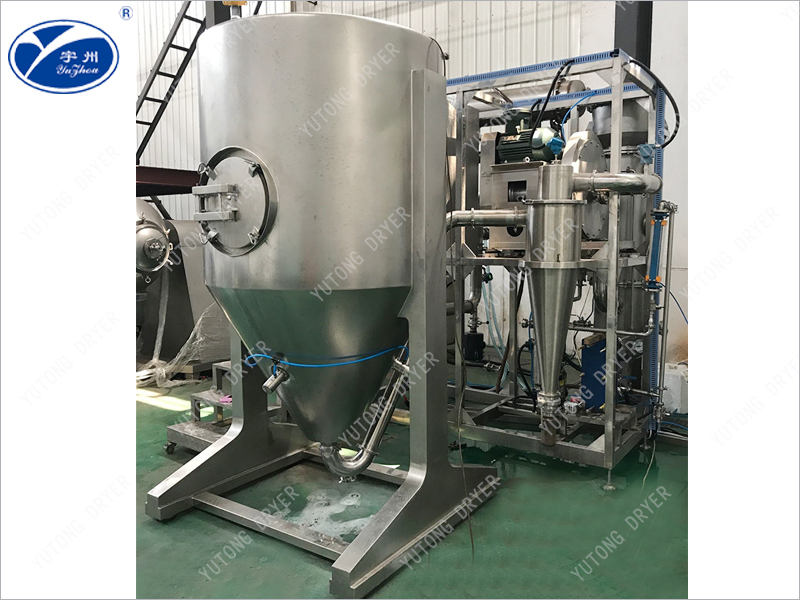 Closed-loop spray dryer is a special equipment for drying organic solvent slurry. The unit is made of nitrogen (or other inert gas) as a drying cycle gas, the drying process material can prevent oxidation, while the organic solvent can be recovered. Closed cycle spray dryer is generally used for the powder drying of ethanol, acetone, hexane and other organic solvents. The equipment adopts explosion-proof design and the drying process is safe and environmentally friendly.