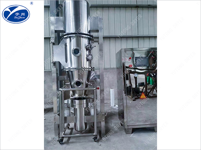 The fluidized bed air distribution plate is made into a special annular plate structure, with each plate forming a stacked form, allowing the airflow to pass through the gaps between the blades, forming a circulating high-speed airflow, thereby making the material move in a regular vortex like manner. The adhesive or coating liquid is sprayed into the regular flow material layer through the pneumatic nozzle installed on the side wall, thereby turning the powder into particles or obtaining a continuous and uniform film coating.