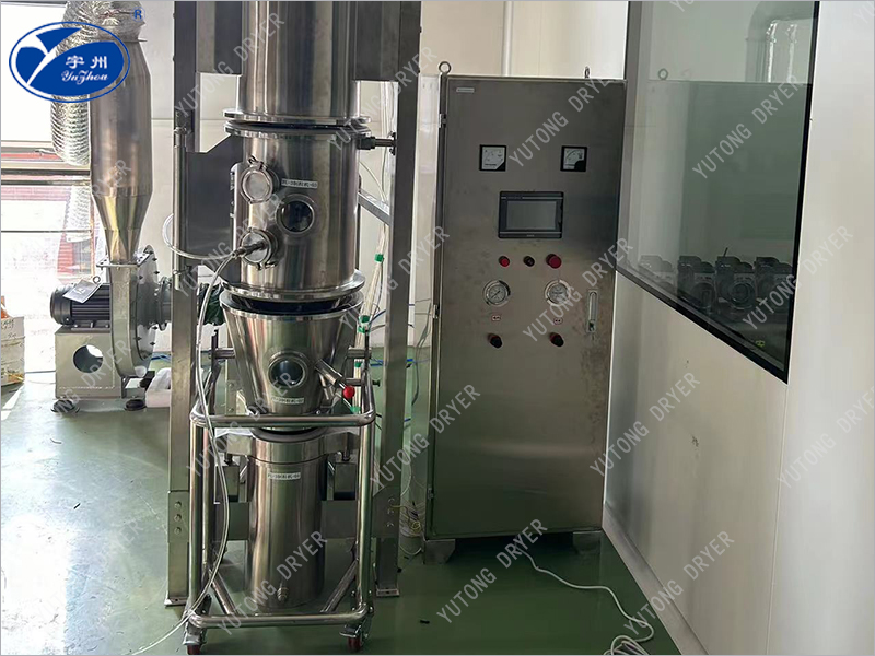 FL series boiling pelletizing machine is also known as "one-step pelletizing machine", the use of boiling pelletizing method is the result of the comprehensive application of spray technology and fluidization technology, the use of high-speed hot air flow to fluidize powder, and then the bonding effect of atomized adhesive, so that the solid powder bridge each other, agglomeration, and gradually form particles. This machine is based on the traditional double column air cap type granulator, which is a newly developed single column airbag sealed granulator, suitable for the granulator drying operation in pharmaceutical, chemical, food and other industries.