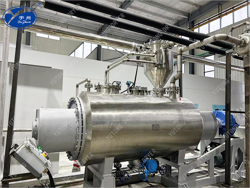 磷酸鐵鋰干燥工程之臥式攪拌真空干燥機(jī)是利用物料中的水份在真空狀態(tài)下沸點(diǎn)降低的特點(diǎn)來進(jìn)行干燥的設(shè)備。
