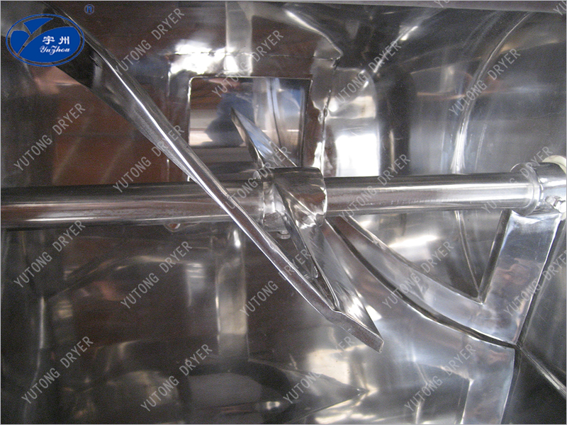 本機(jī)與物料接觸處均采用不銹鋼制造,槳葉與桶身間隙小,混合無(wú)死角,攪料軸兩端設(shè)有密封裝置,能防止物料外瀉。