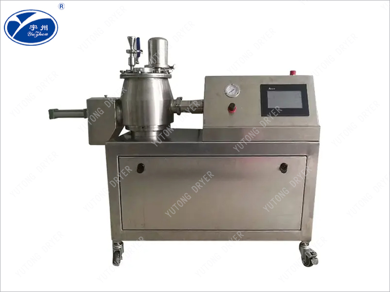 粉體物料與粘合劑在圓筒(錐形)形容器中,由底部混合漿充分混合成濕潤軟材,然后由側(cè)置的高速粉碎槳切割成均勻的濕顆粒。