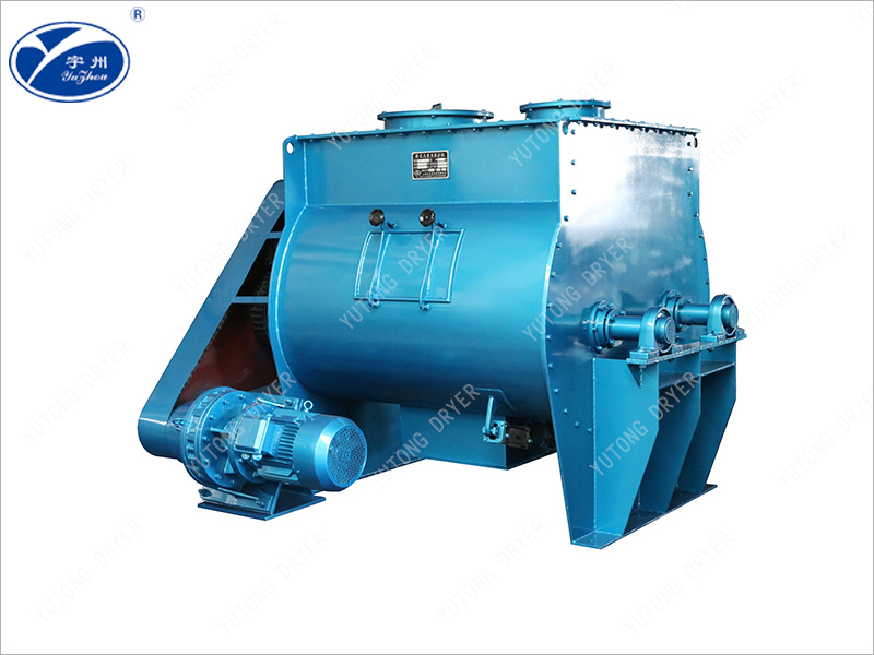 本系列混合機以強烈、高效混合為特點、臥式筒體內兩根攪拌等速反向旋轉,上特殊布置的槳葉確保物料徑向、環(huán)向、軸向三向運動,形成復合循環(huán),在極短的時間內達到均勻混合。