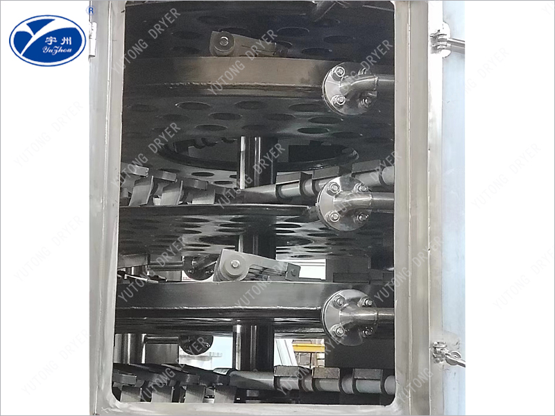 每層干燥盤皆可單獨(dú)通入熱介質(zhì)或冷介質(zhì),對(duì)物料進(jìn)行加熱或冷卻,物料溫度控制準(zhǔn)確、容易。