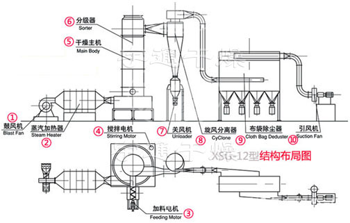 7、干燥室內(nèi)周向氣速高,物料停留時間短,有效防止物料粘壁及熱敏性物料變質(zhì)現(xiàn)象,達(dá)到高效、快速、小設(shè)備、大生產(chǎn)。