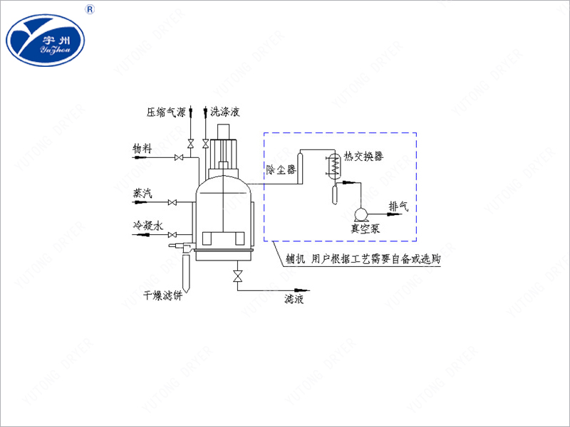 (3)攪拌混合:對(duì)需要再漿化過濾的物料,可起攪拌混合的作用,加速洗滌液與母液的置換,優(yōu)化洗滌效果。