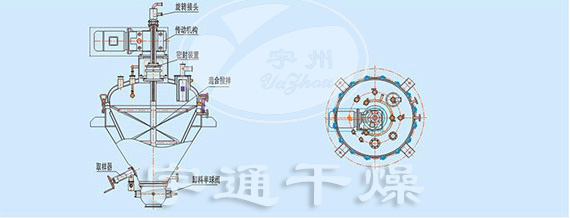 2、頂部驅(qū)動(dòng),設(shè)備在進(jìn)料、干燥、混合、出料工藝過程中與外界空氣無接觸,無泄漏,無死角。