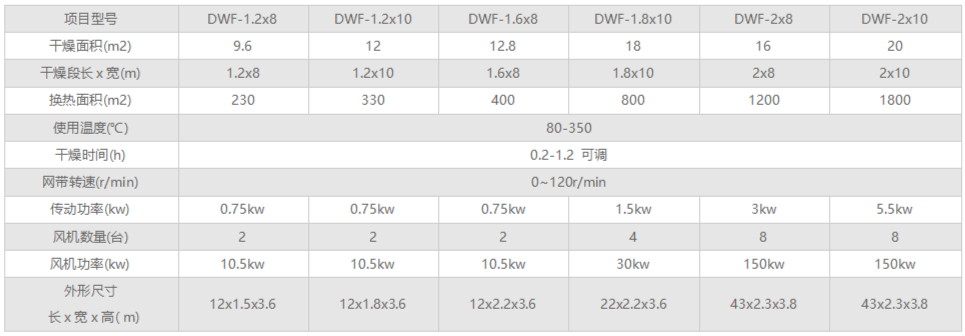 DWF系列氣流噴射式帶式干燥機(jī)適用于透氣性差的物料干燥,典型的例如:紙漿干燥、涂膜布干燥、板材類(lèi)干燥。