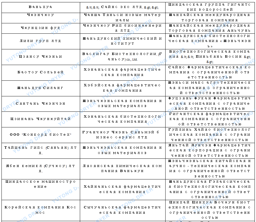 Хэфэй Xuangaoxin, Ningbo Moxi Technology, Hubei Wanrun New Materials, Ningde New Energy, Sichuan Xingneng New Materials, Внутренняя Монголия Hua Carbon New Materials Technology, Shenzhen Bioeng New Materials, Xiangyang Hua