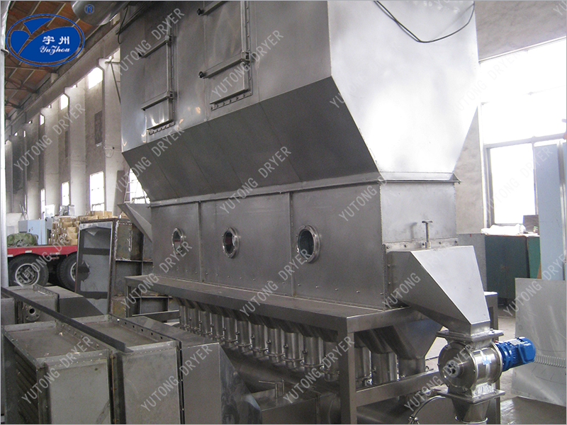 Чистый горячий воздух распределяется в кровать через клапанную пластину, а влажный материал, поступающий из питателя, кипит горячим воздухом. Из - за широкого контакта между горячим воздухом и материалом процесс теплопередачи усиливается, поэтому он может высыхать за относительно короткое время. При использовании непрерывного типа материал поступает с одного конца кровати, кипит и высыхает от нескольких секунд до нескольких минут, а затем автоматически вытекает с другого конца кровати. Устройство обычно работает под отрицательным давлением.